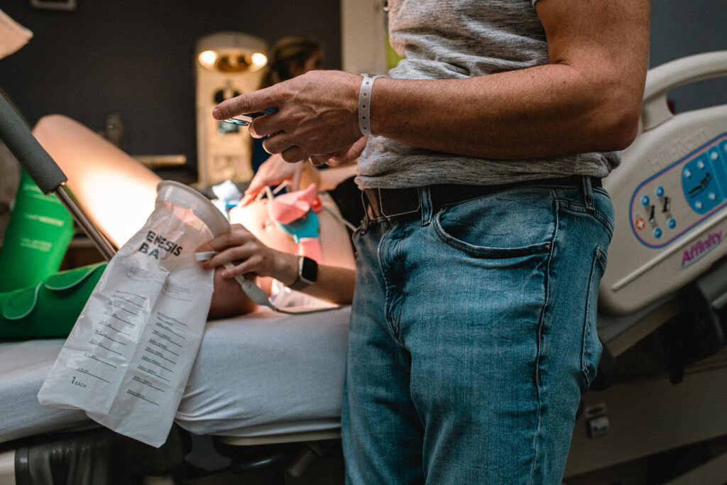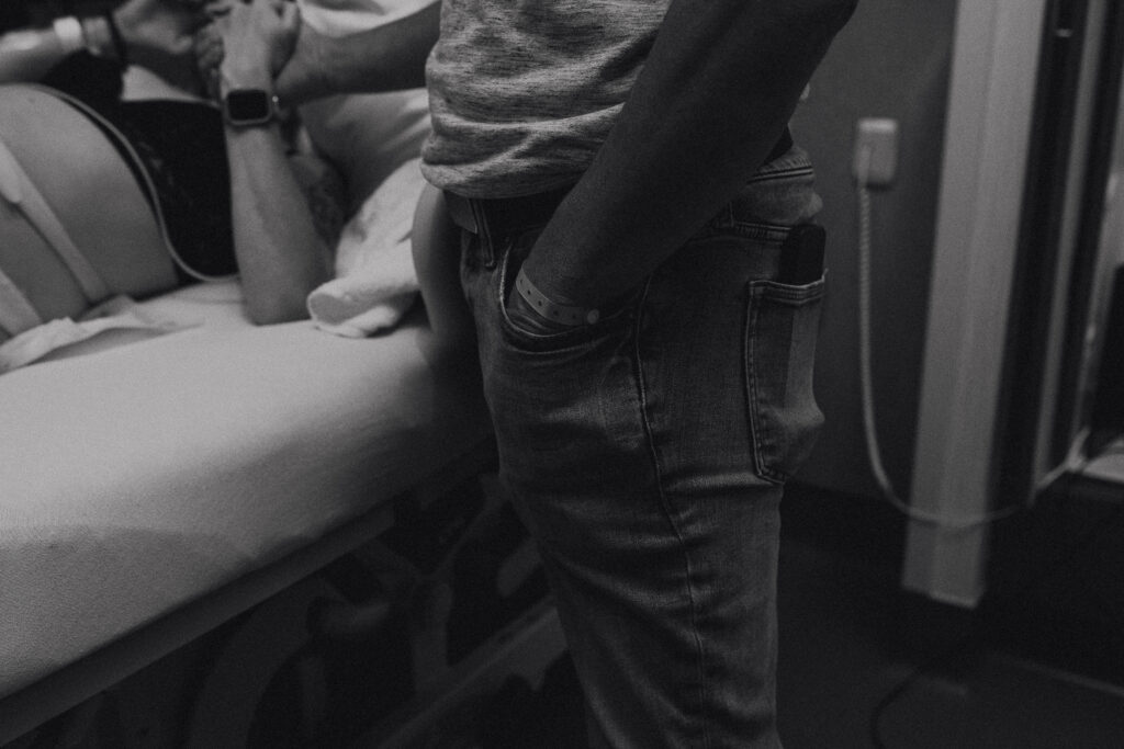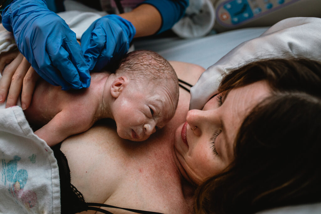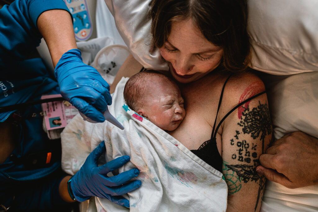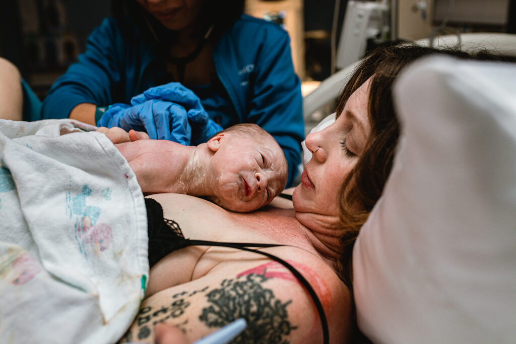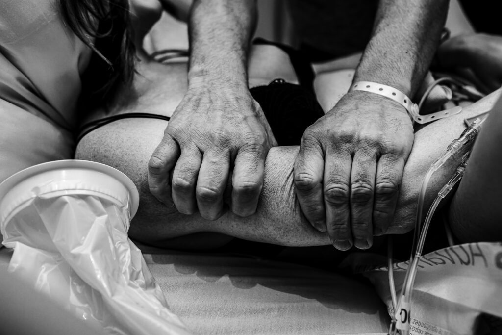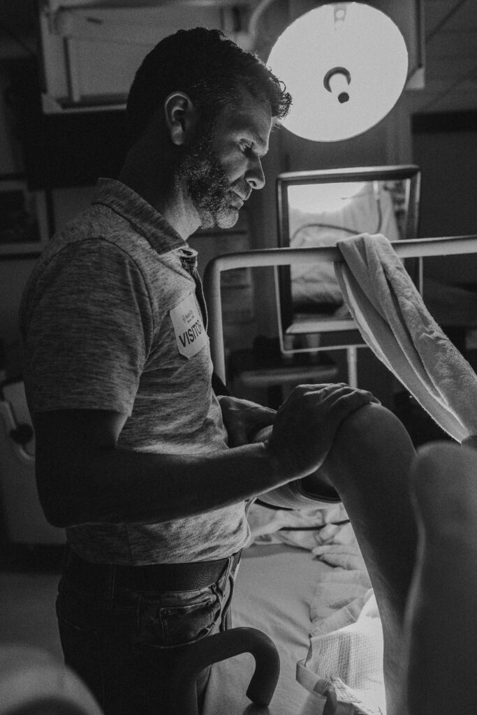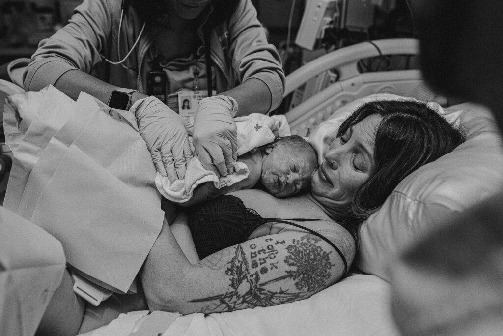During the pushing stage, her doctor introduced tug-of-war pushing — a grounded, hands-on technique that helped her channel every surge with intention. Her husband never left her side, anchoring her through every contraction, every breath, every moment of doubt and triumph. The room felt steady and reverent — the way birth so often is when a team rallies behind a woman and believes in her.