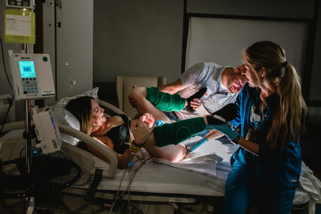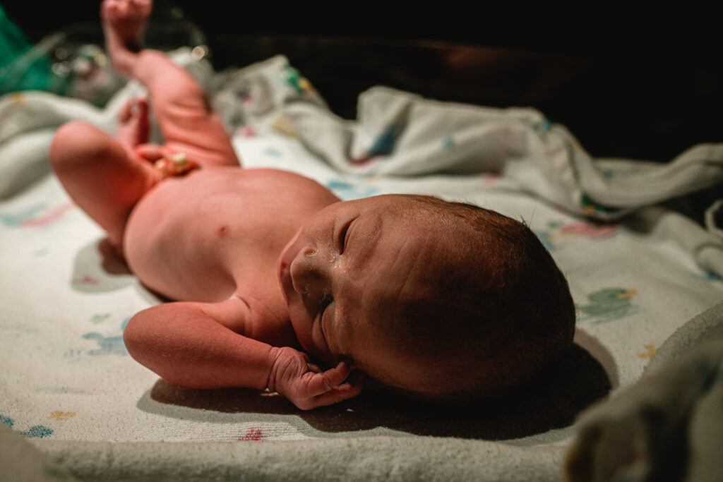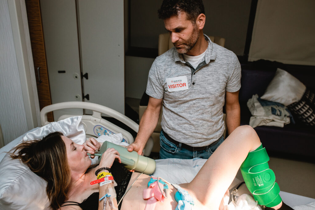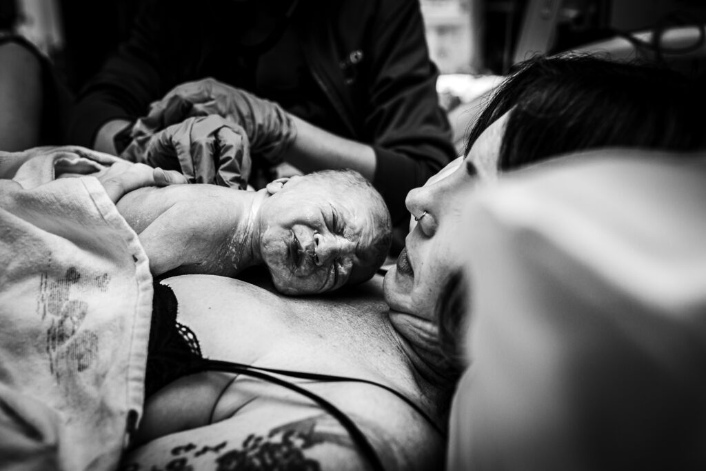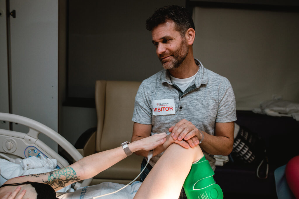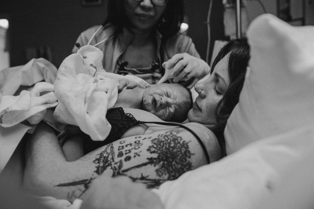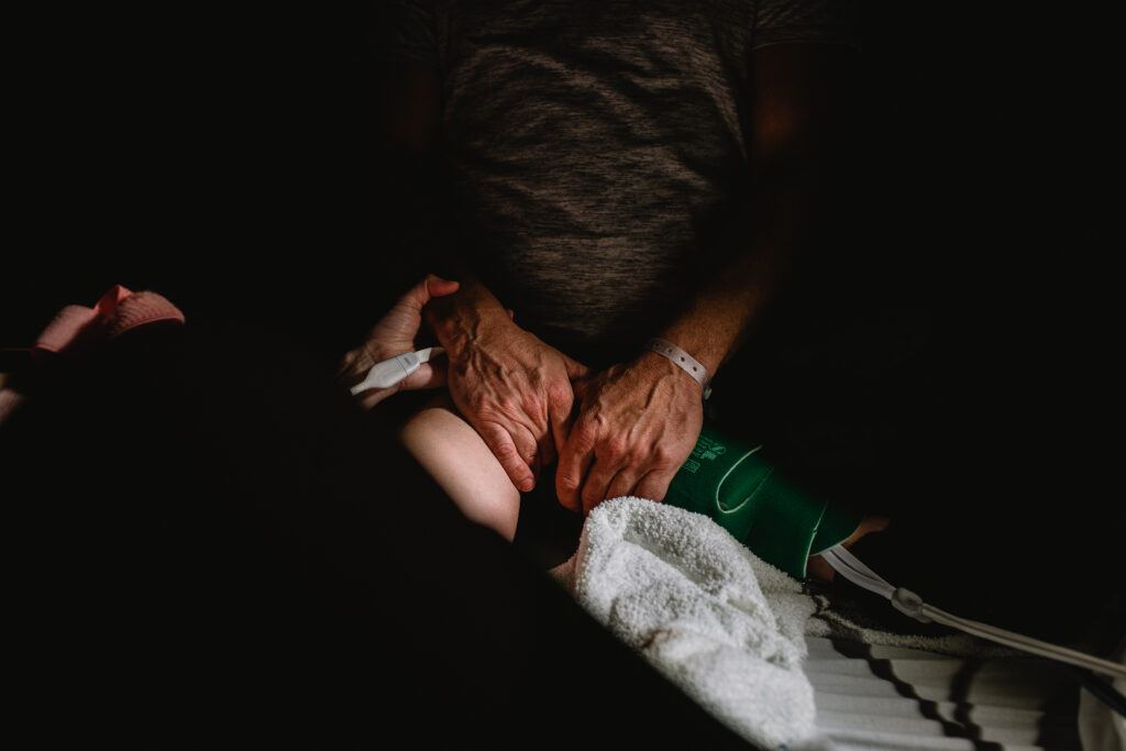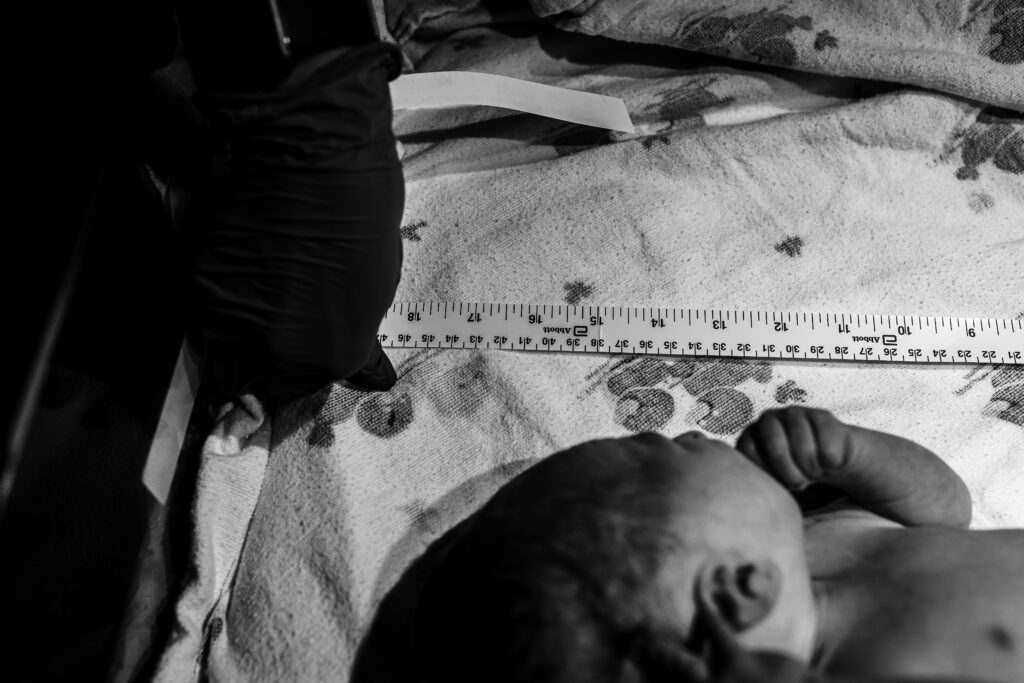 During the pushing stage, her doctor introduced tug-of-war pushing — a grounded, hands-on technique that helped her channel every surge with intention. Her husband never left her side, anchoring her through every contraction, every breath, every moment of doubt and triumph. The room felt steady and reverent — the way birth so often is when a team rallies behind a woman and believes in her.