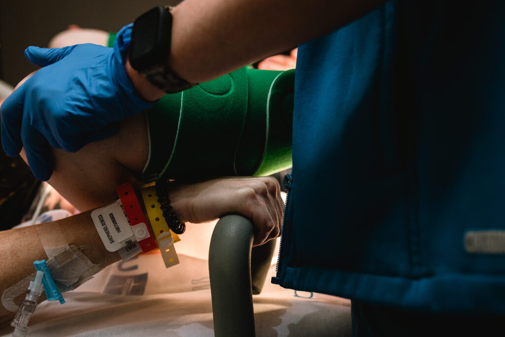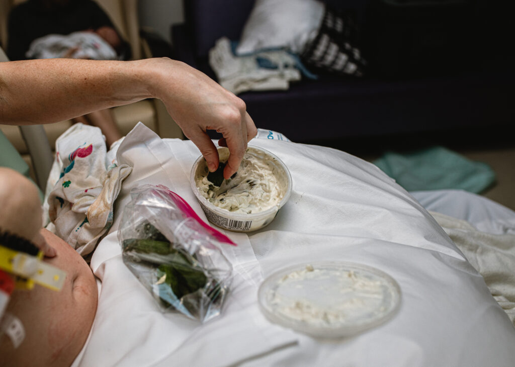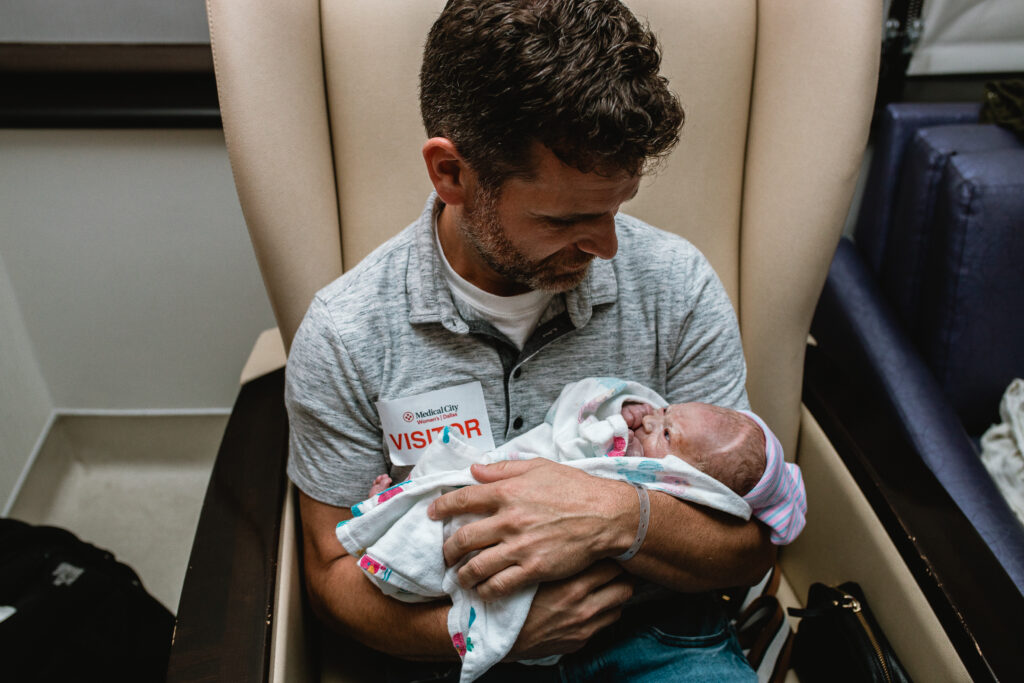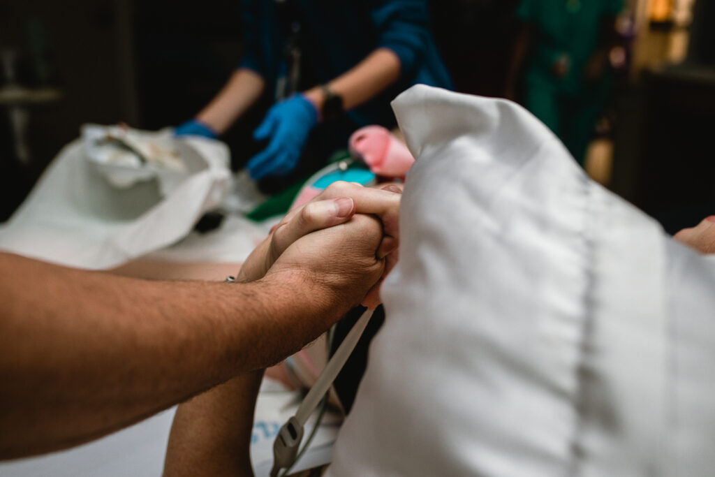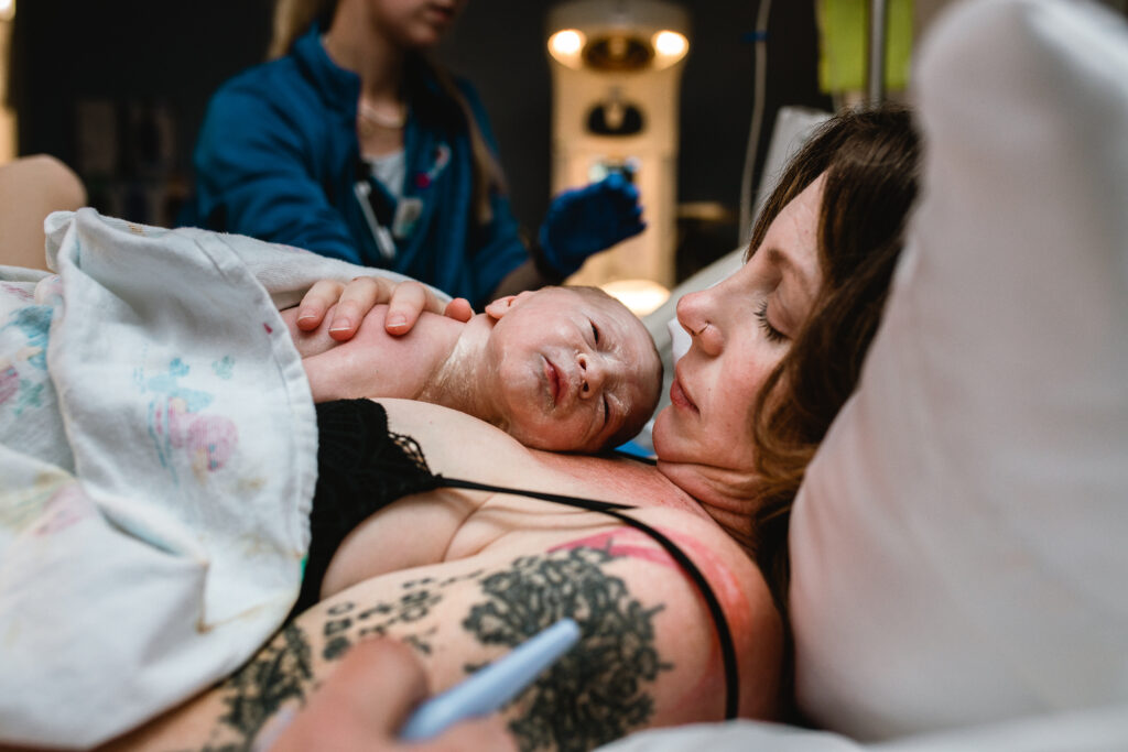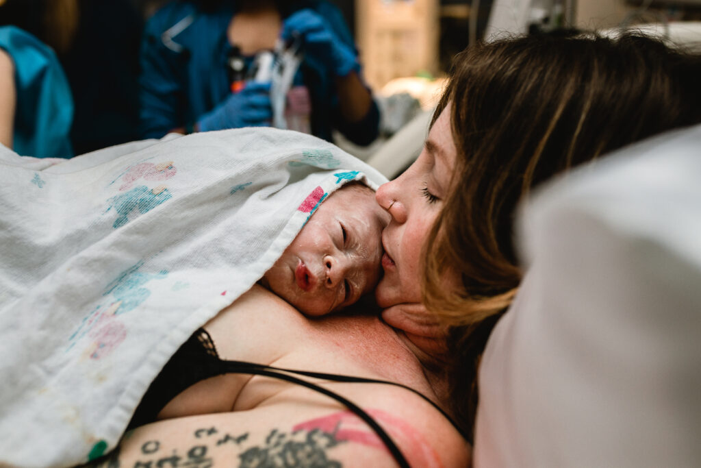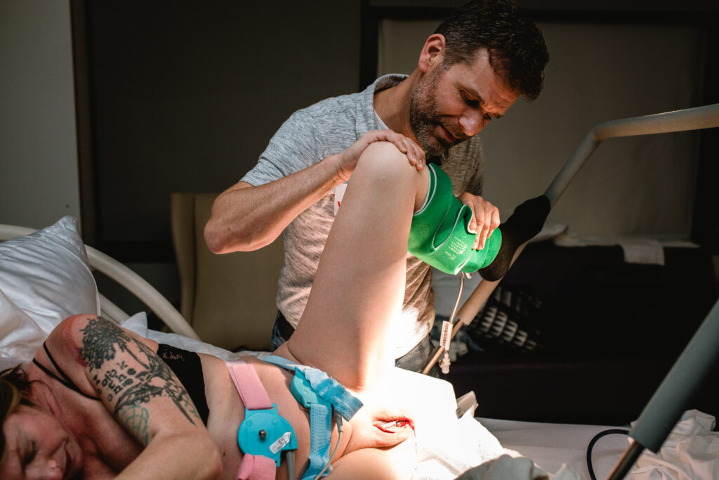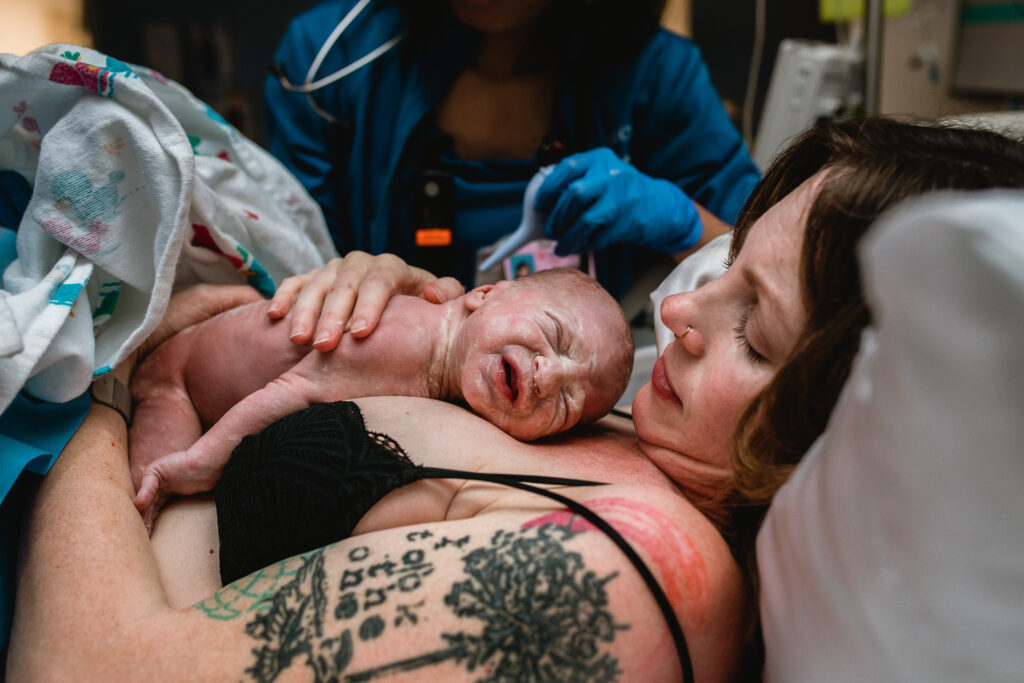 During the pushing stage, her doctor introduced tug-of-war pushing — a grounded, hands-on technique that helped her channel every surge with intention. Her husband never left her side, anchoring her through every contraction, every breath, every moment of doubt and triumph. The room felt steady and reverent — the way birth so often is when a team rallies behind a woman and believes in her.