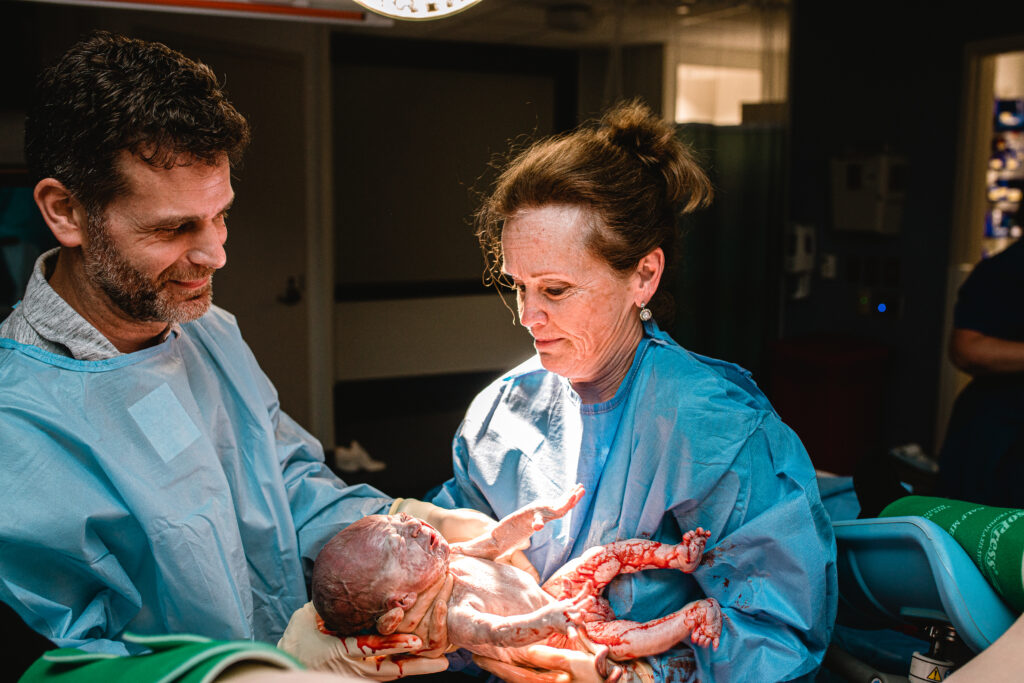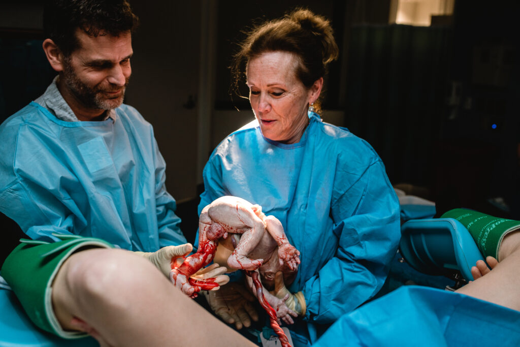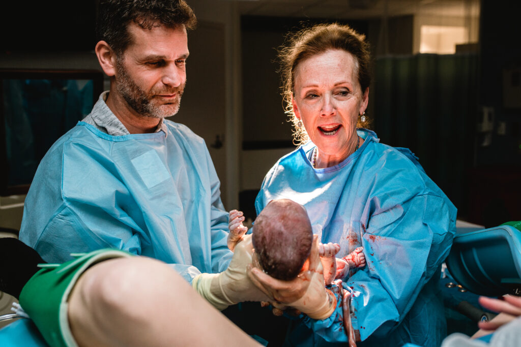 and lifting their child into their first breath of life.